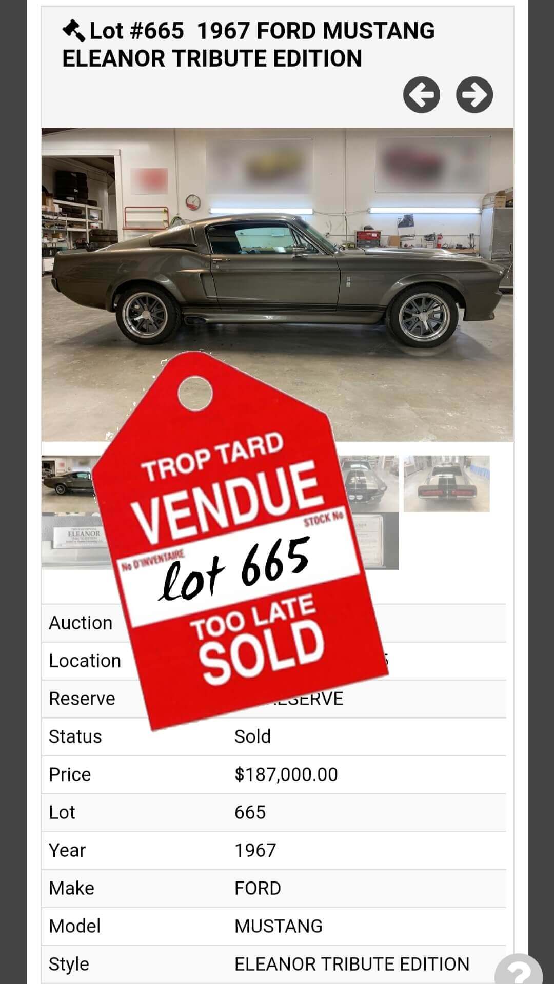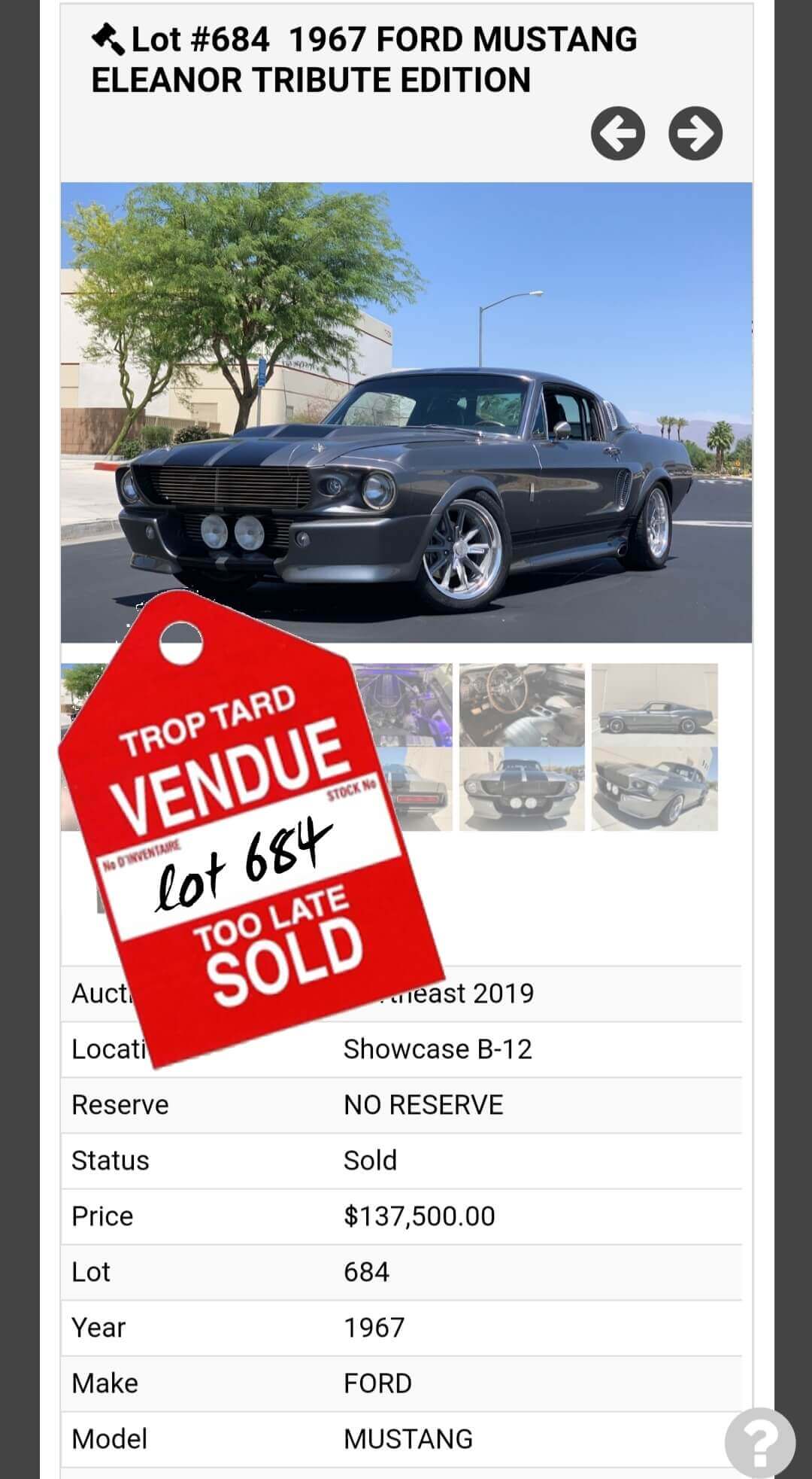 Accueil Ford Mustang I (1964 - 1973) Northeast 2019 : 3 Répliques Mustang “Eleanor” Vendues par Barrett-Jackson.