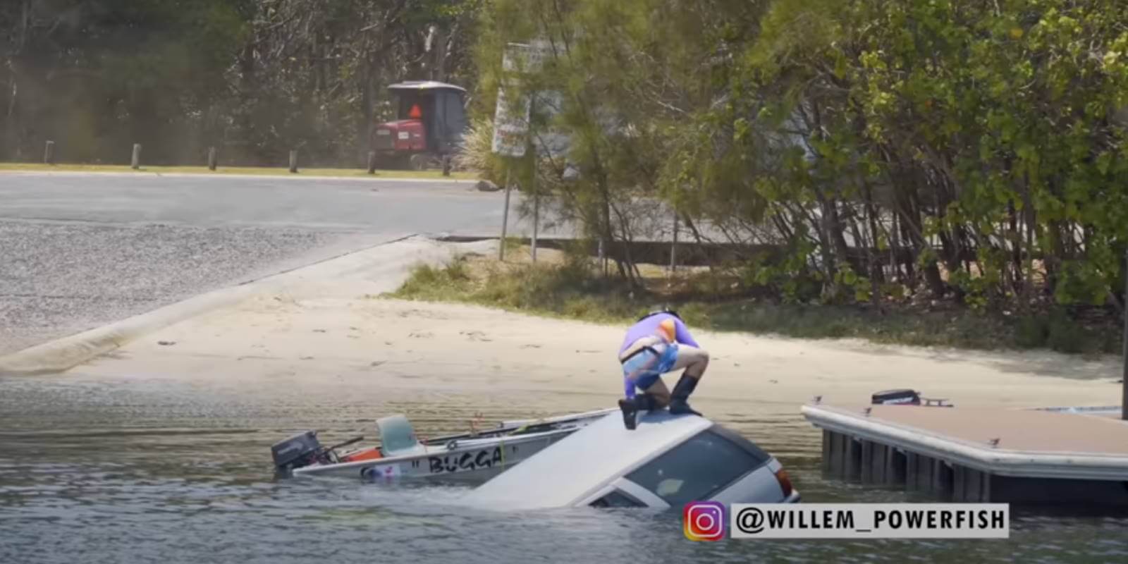 La vidéo en question a été publiée sur sa chaîne YouTube il y a un peu plus d’un an, en novembre 2019. Au volant d’une Ford Falcon tractant une remorque porte-bateaux tout près d’une rivière, l’influenceur a piégé une victime en lui demandant de superviser la manœuvre de mise à l’eau du bateau.