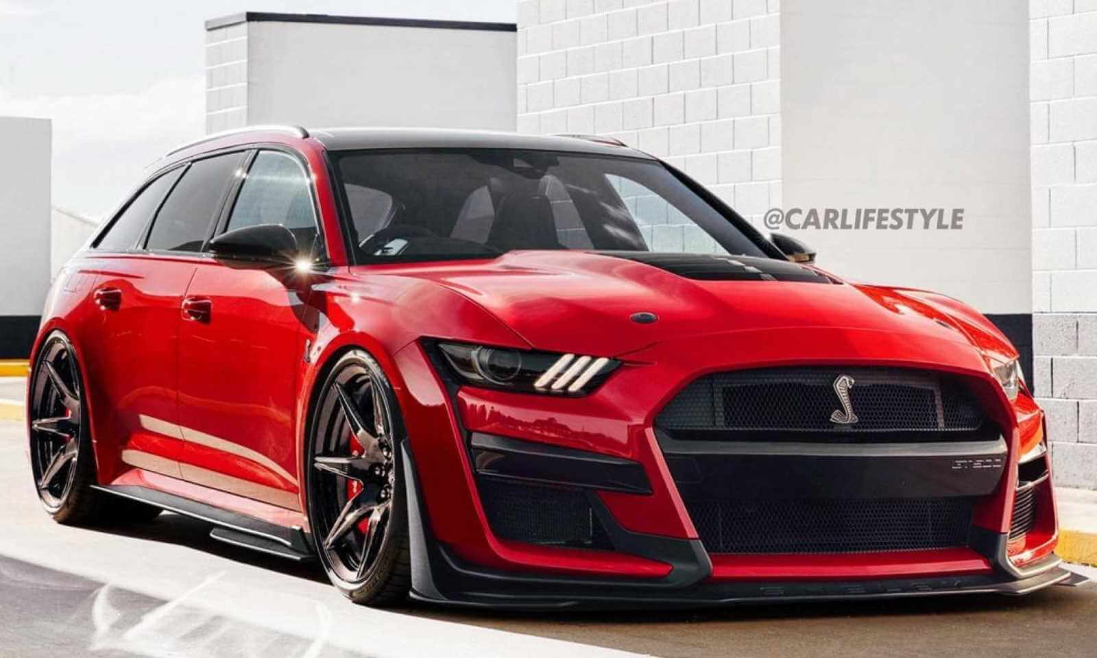 Pour le fun, les illustrateurs de CarLifestyle se sont amusés à imaginer une version break familiale de la toute dernière Mustang Shelby GT500, la plus puissante des Ford homologuées pour la route.