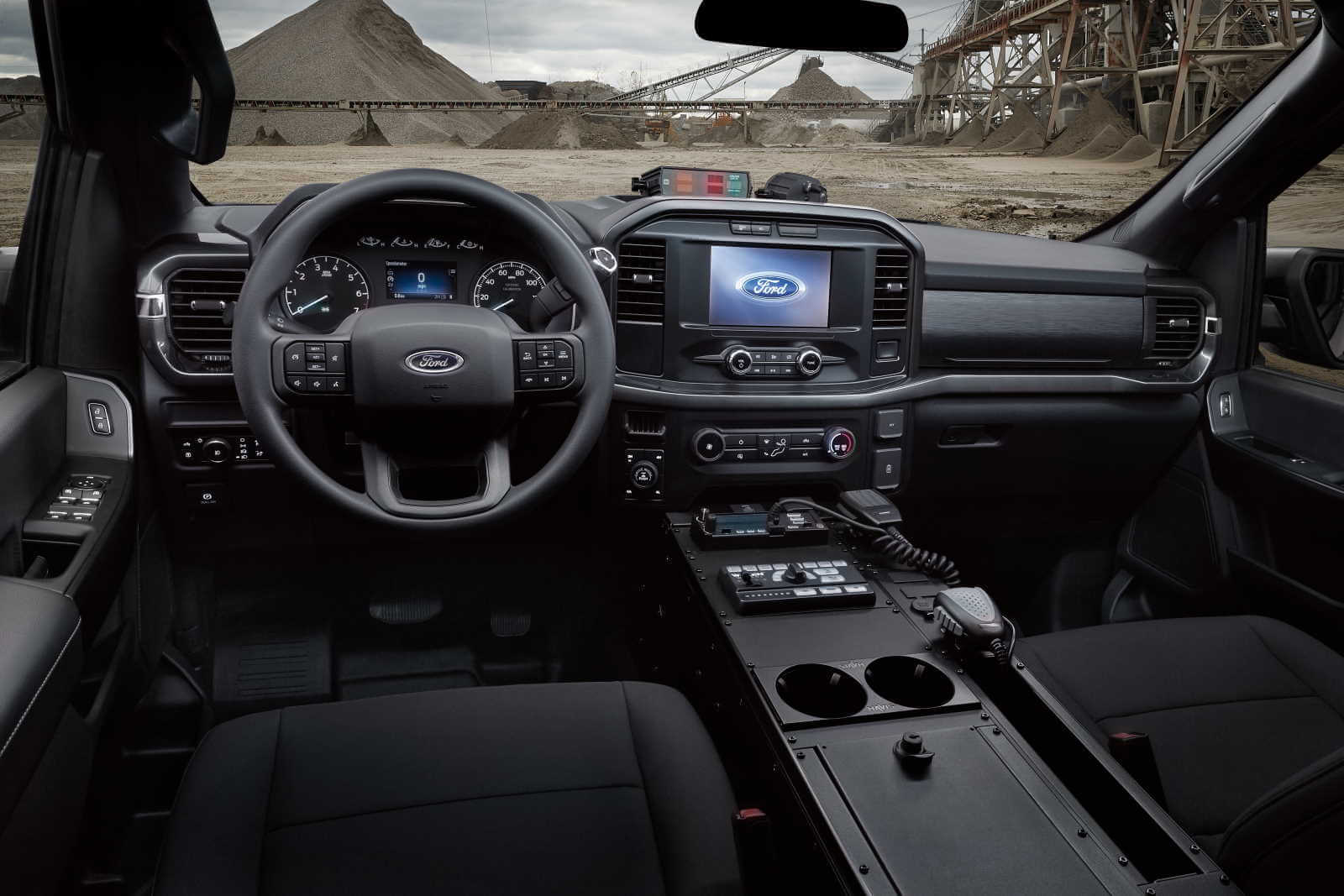 Le F-150 “Police Responder” reçoit une palanquée d’innovations technologique dont certaines ne sont pas disponibles dans la version grand public. Le freinage automatique d’urgence avec détection des piétons, par exemple, peut être désactivé d’une simple pression sur un bouton, en cas de course-poursuite. Par ailleurs, une fonctionnalité permet de retirer la clé et de verrouiller les portes sans éteindre la rampe lumineuse et les sirènes.